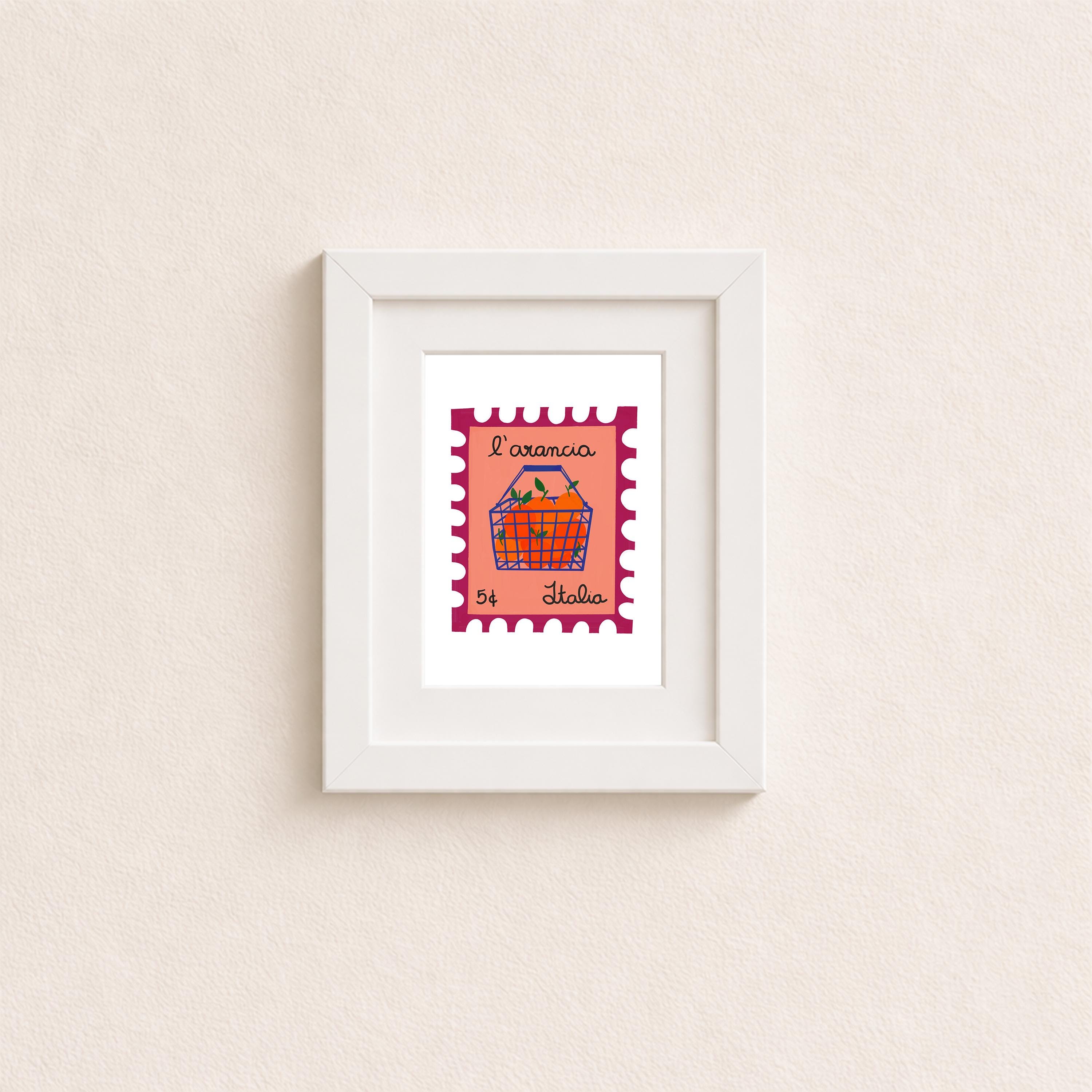 Infuse your space with Mediterranean charm through this Aranciata Stamp giclée print. This high-quality artwork showcases the essence of citrus, making it a versatile piece to bring a slice of sunny Italy to any room or to gift to admirers of Italian culture.