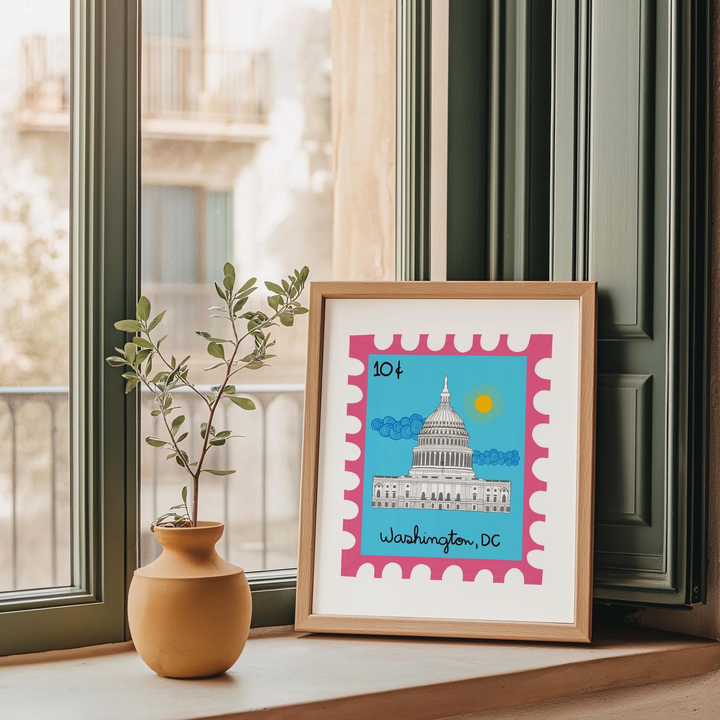 Adorn your walls with the grandeur of the US Capitol Stamp captured in this stunning giclée print. The high-quality depiction of this iconic structure brings a touch of elegance and history to any room. Its versatility makes it a perfect addition to your art collection or as a thoughtful gift for lovers of American heritage.