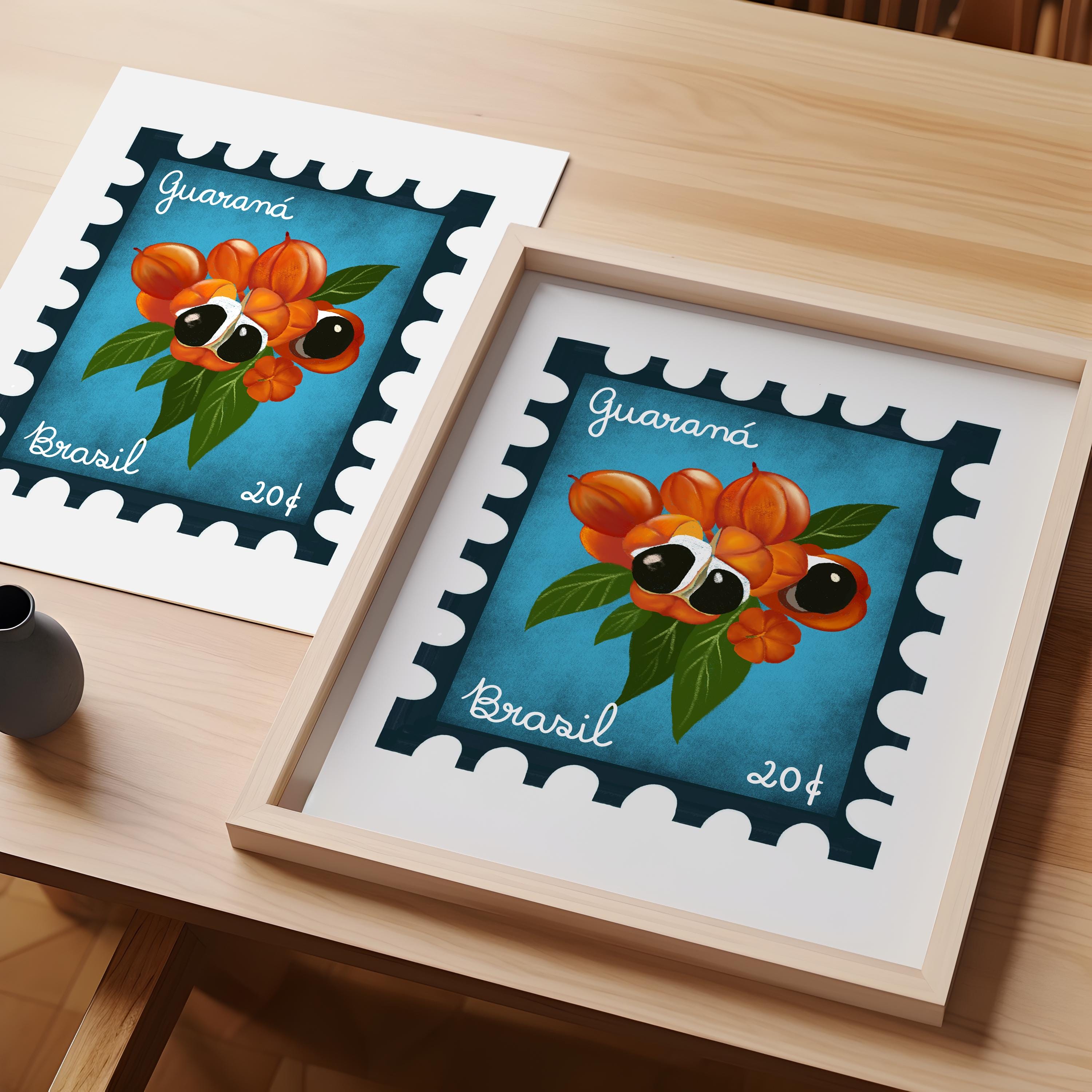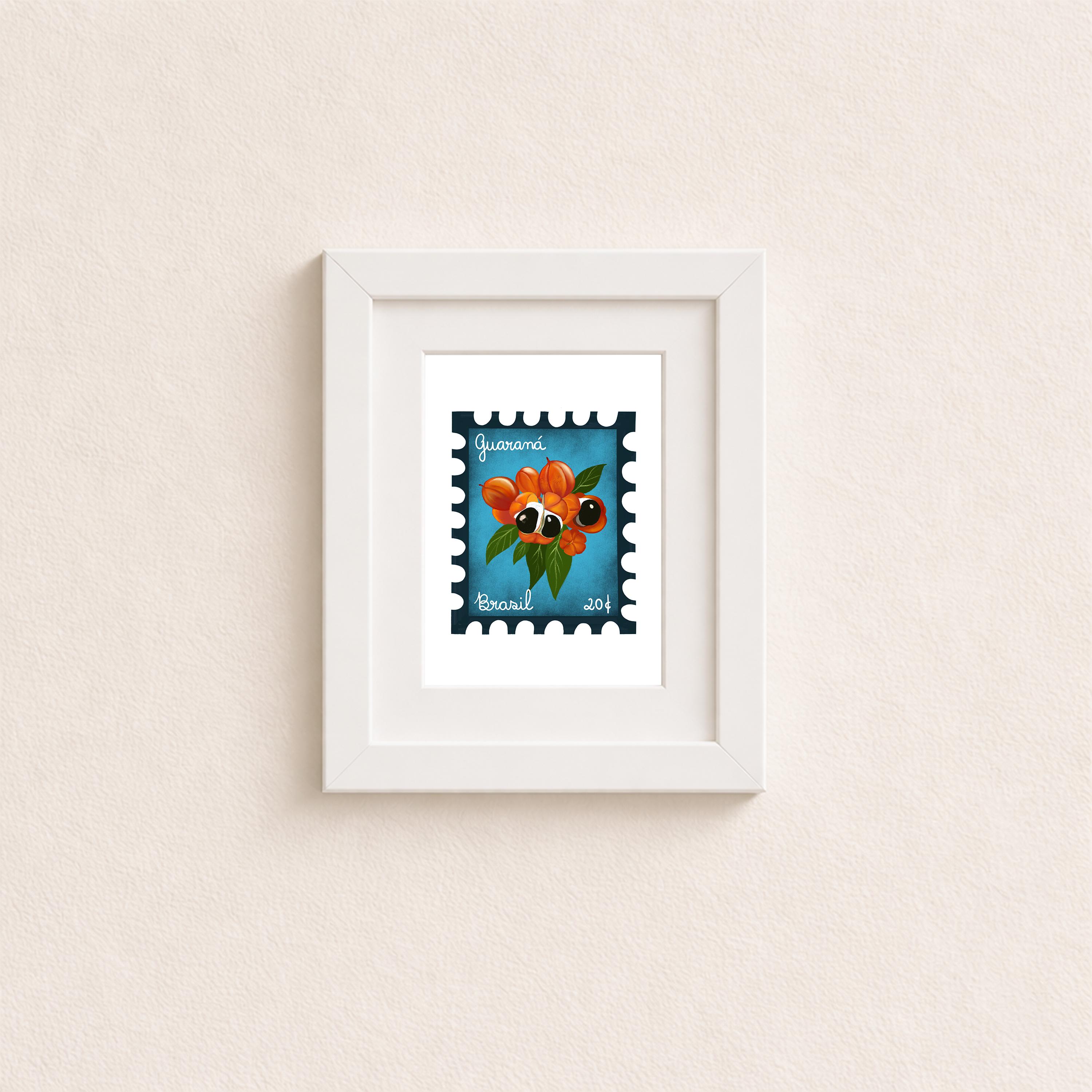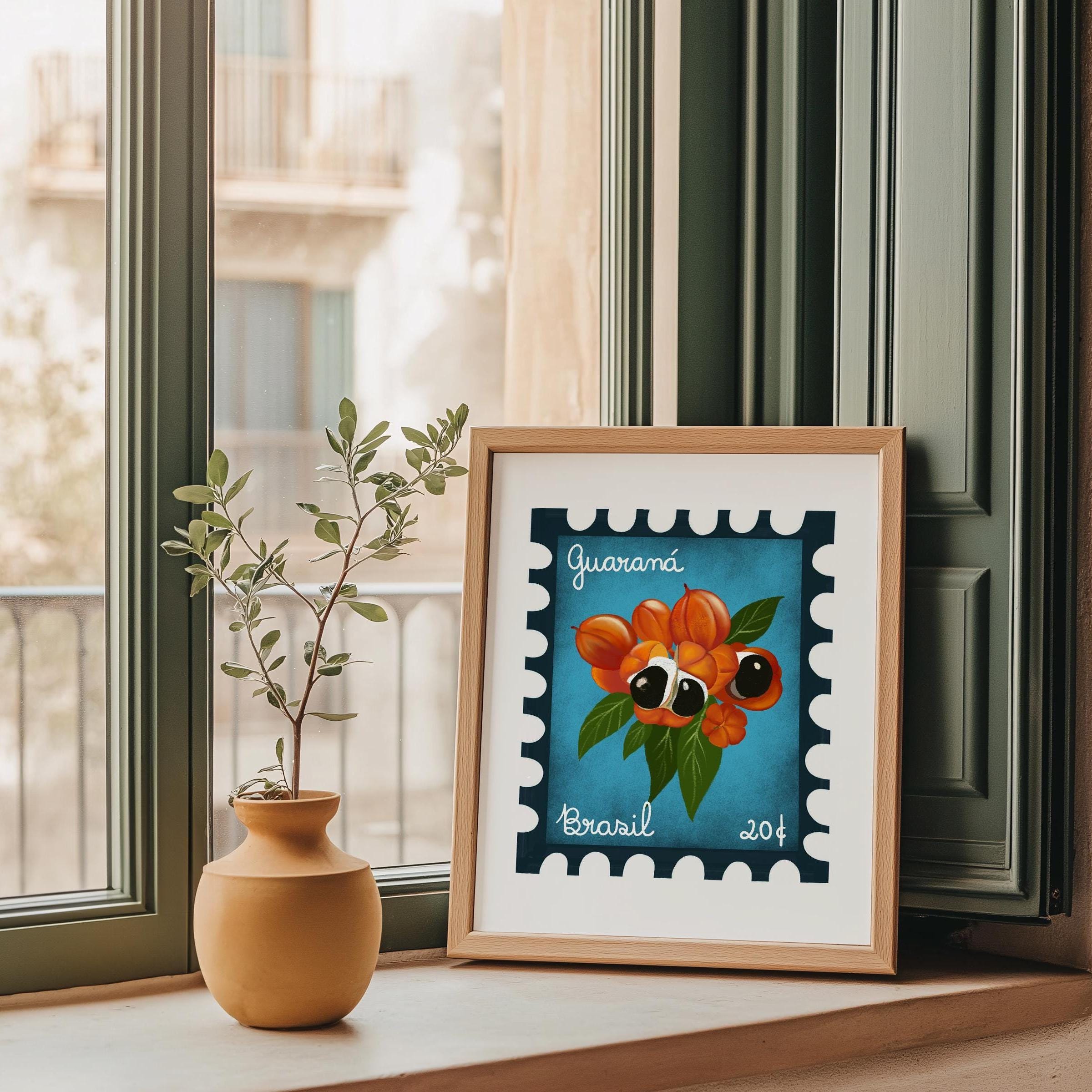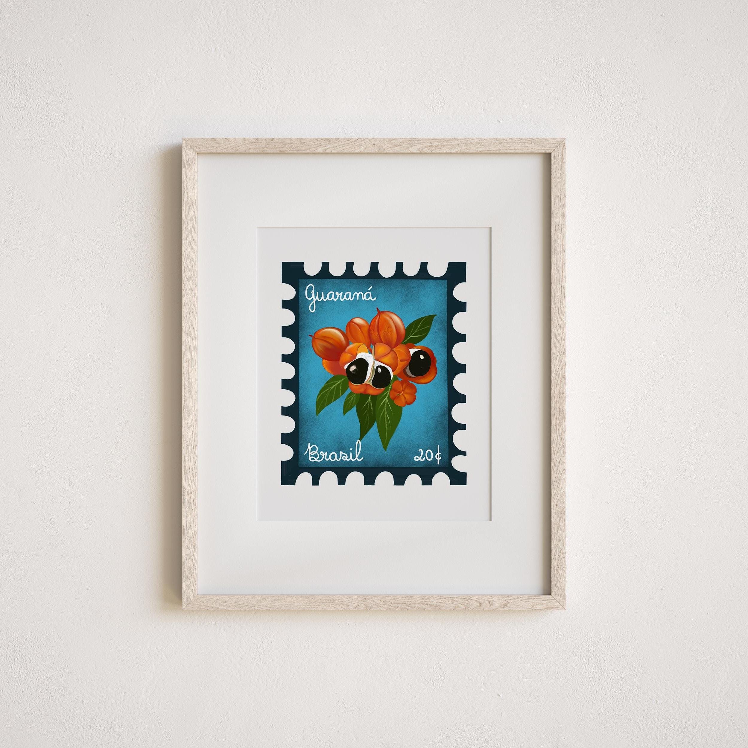 Embrace the colorful spirit of Rio de Janeiro with this vintage stamp art print featuring a colorful guarana fruit. The vivid design celebrates Brazil’s exotic wildlife and vibrant culture, making it an eye-catching centerpiece for any room. A superb choice for collectors and lovers of tropical and travel-inspired decor.
