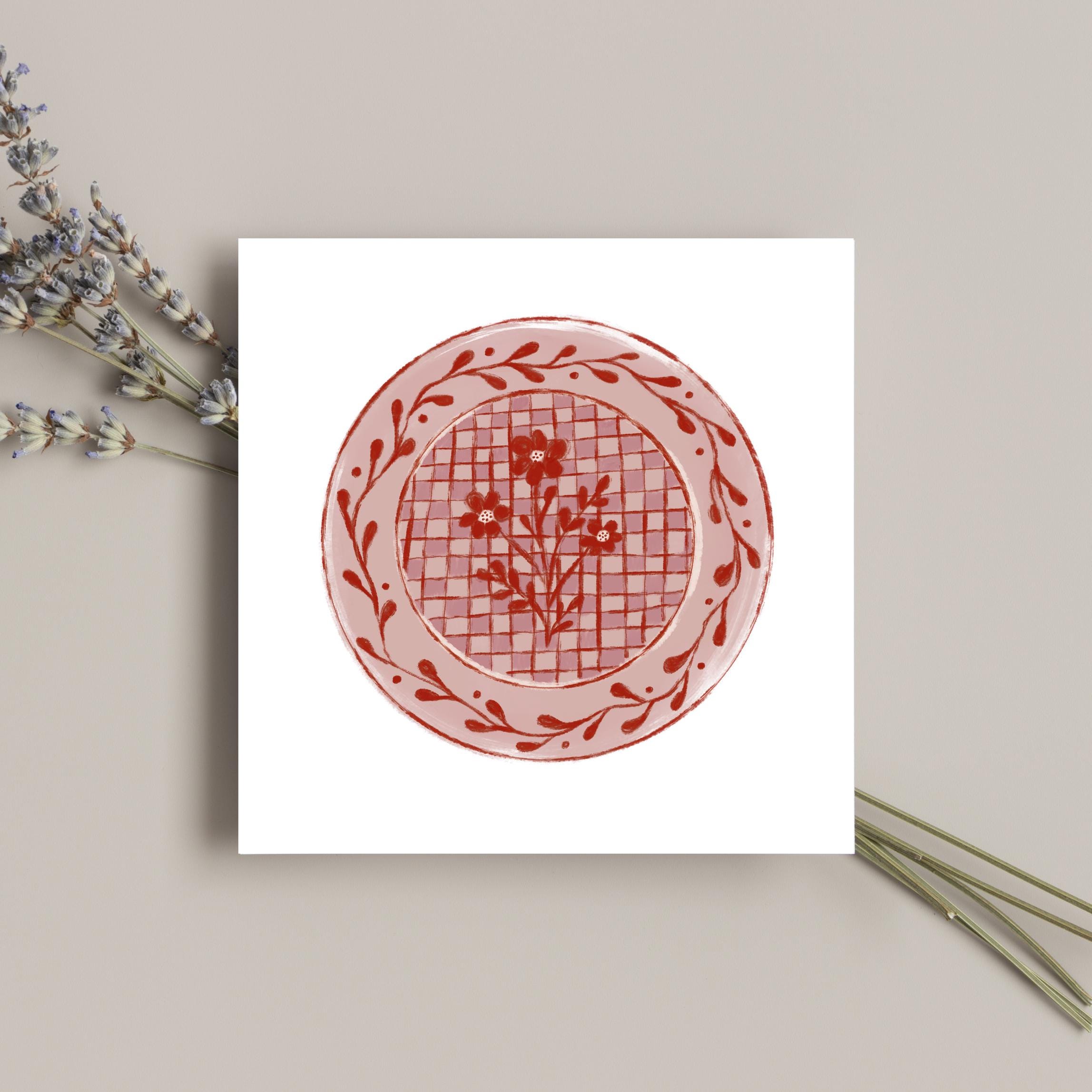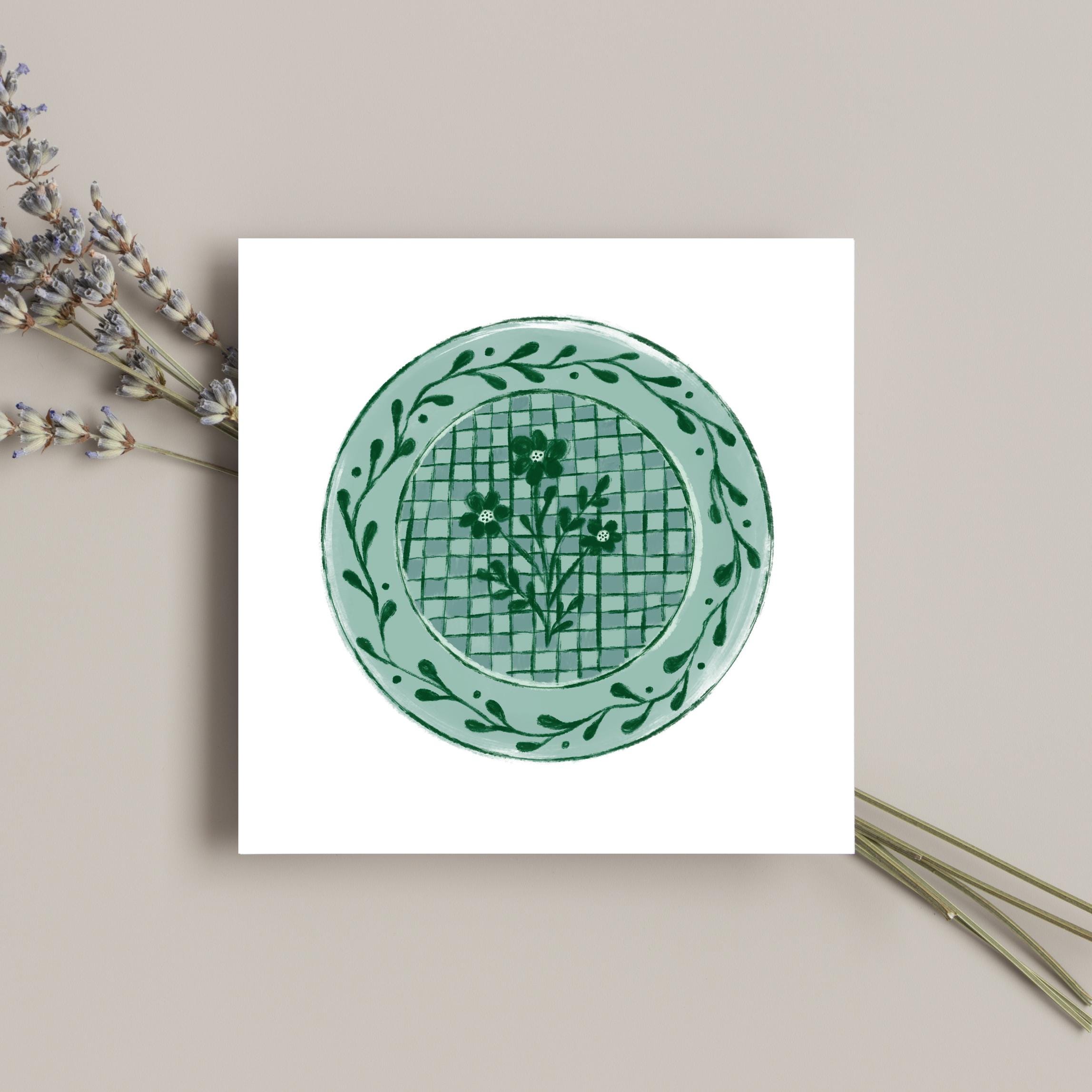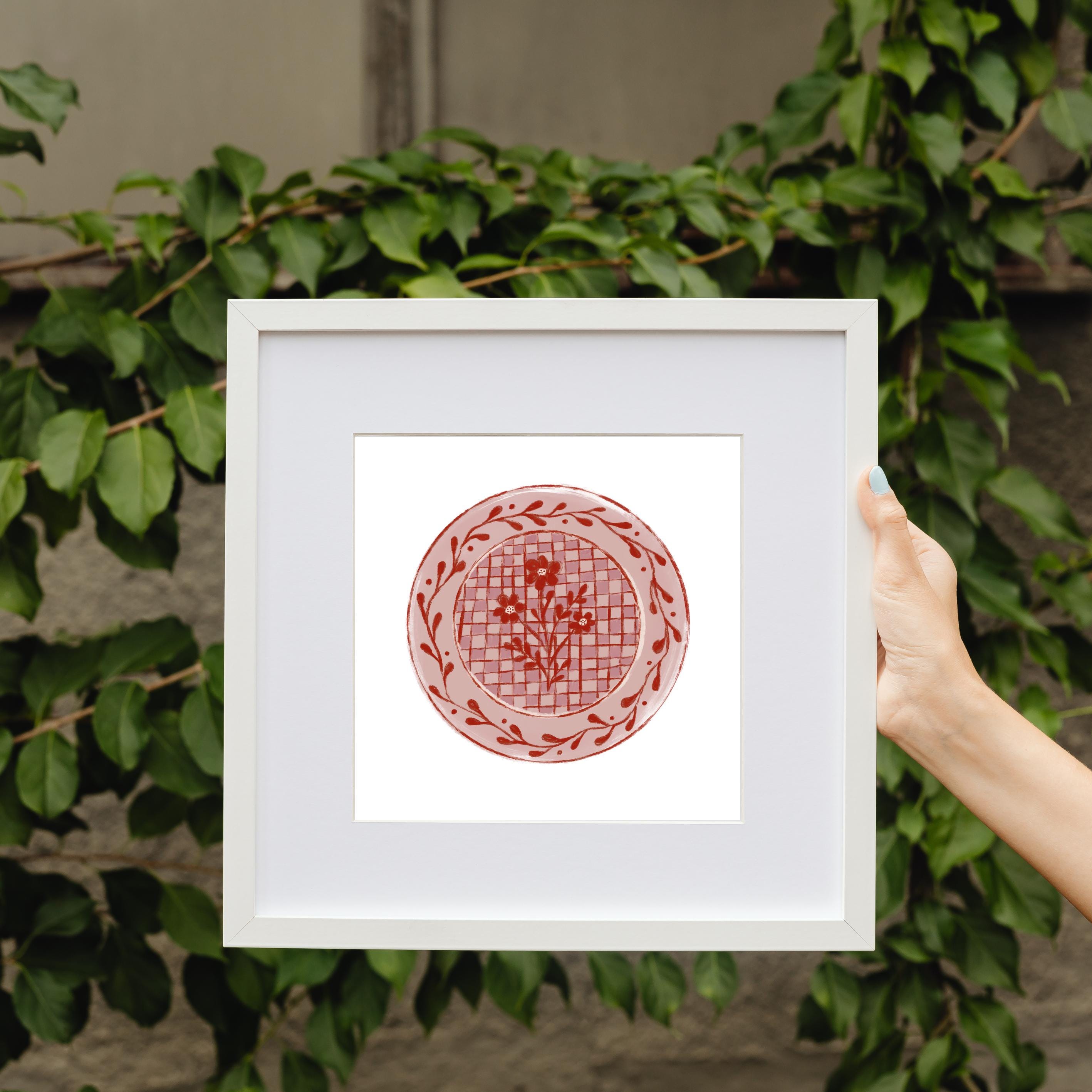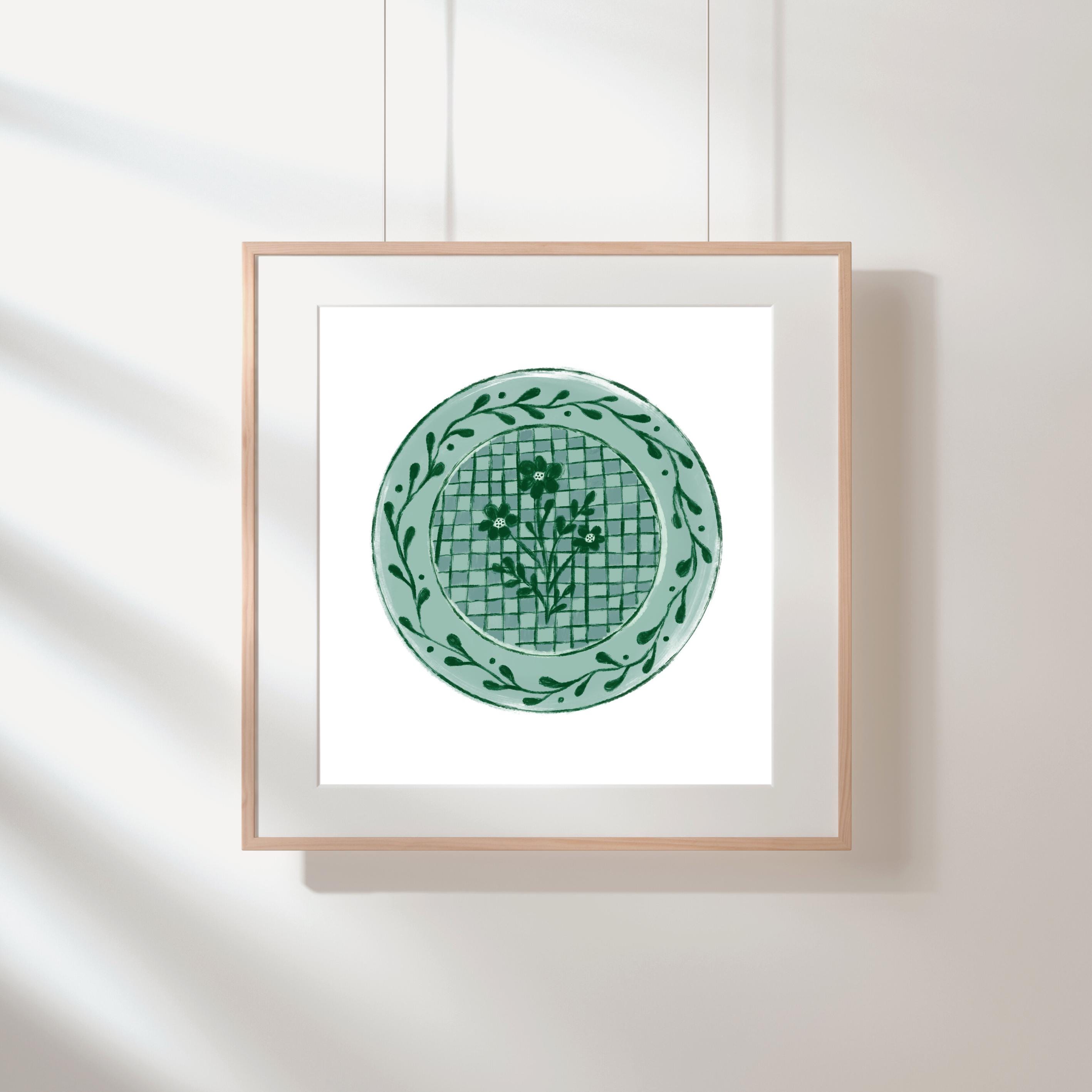 Discover a charming still life art print inspired by vintage ceramic plates, available in red, green, or blue colorways. Each illustration is hand-drawn and hand-painted, then printed using the giclée process for rich color and fine detail. A timeless piece that adds warmth, elegance, and a cozy European feel to kitchens, dining spaces, and curated gallery walls. Ideal for art lovers and thoughtful gifting.